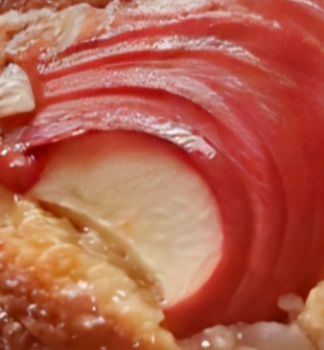 4. Add apple slices: Arrange the thin apple slices on top of the almond filling in a circular pattern. Press them gently into the filling.