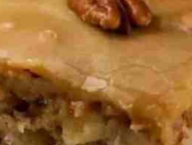 IngredientDescription:A soft, buttery cake loaded with crunchy pecans and topped with a rich, brown sugar frosting. This 4-ingredient recipe is simple, quick, and absolutely delicious – perfect for any occasion!IngredientsFor the Cake:1 box yellow cake mix1 cup chopped pecans1/2 cup unsalted butter, meltedFor the Frosting:1/2 cup brown sugar(Optional: a pinch of salt to enhance the frosting flavor)InstructionsPreheat Oven: Preheat your oven to 350°F (175°C). Grease a 9×13-inch baking pan.Prepare Cake Batter: In a large mixing bowl, combine the yellow cake mix, melted butter, and chopped pecans. Mix until well combined.Bake: Pour the batter into the prepared pan. Bake for 25–30 minutes, or until a toothpick inserted into the center comes out clean. Remove from the oven and let cool completely.Prepare Frosting: In a small saucepan over medium heat, melt the brown sugar with 2–3 tablespoons of butter or water (optional for creaminess). Stir continuously until smooth.Frost Cake: Pour the warm brown sugar frosting over the cooled cake, spreading evenly. Allow to set slightly before slicing.Serve: Slice and enjoy your buttery, nutty treat!✅ Tips:For extra crunch, sprinkle additional chopped pecans on top before the frosting sets.This cake can be stored in an airtight container at room temperature for 2–3 days.Instructions:Enjoy!