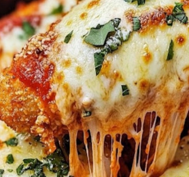 Cheesy Chicken Parmesan Bake recipe for you!Cheesy Chicken Parmesan BakeA simple, oven-baked version of classic Chicken Parmesan, loaded with gooey cheese and flavorful sauce.Ingredients:2 large boneless, skinless chicken breasts, halved lengthwise (or 4 thin-cut chicken breasts)1 cup Italian-seasoned breadcrumbs½ cup grated Parmesan cheese1 teaspoon garlic powder1 teaspoon Italian seasoning1 egg, beaten1 tablespoon milk2 cups marinara sauce1 ½ cups shredded mozzarella cheese½ cup shredded Parmesan cheese1 tablespoon olive oilSalt & pepper to tasteInstructions:1. Preheat oven to 375°F (190°C). Lightly grease a 9×13-inch baking dish.2. In a shallow dish, mix breadcrumbs, ½ cup Parmesan cheese, garlic powder, Italian seasoning, salt, and pepper.3. In another dish, whisk the egg with milk.4. Dip each chicken breast in the egg mixture, then coat with the breadcrumb mixture.5. Heat olive oil in a skillet over medium heat. Sear the chicken for 2-3 minutes per side until golden brown (it will finish cooking in the oven).6. Spread 1 cup of marinara sauce in the baking dish. Arrange the seared chicken on top.7. Pour the remaining marinara sauce over the chicken. Sprinkle with mozzarella and Parmesan cheese.8. Bake uncovered for 20-25 minutes, or until the chicken reaches an internal temperature of 165°F and the cheese is bubbly and golden.9. Let it rest for a few minutes before serving.Serving Suggestions:Serve over pasta, garlic bread, or with a fresh side salad.Garnish with fresh basil or extra Parmesan for extra flavo
