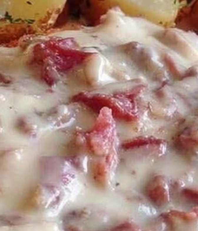 Creamed Chipped Beef on Toast, fondly nicknamed “S.O.S” by many military veterans (we’ll let you guess what it stands for!), is a beloved old-school dish that has stood the test of time. This simple, savory meal might look modest on the plate, but one bite tells the story of hearty comfort, nostalgic warmth, and pure satisfaction.Whether you’re reminiscing about your grandmother’s kitchen or just discovering this retro gem, Creamed Chipped Beef on Toast deserves a spot in your recipe rotation.At its core, this dish consists of thin slices of dried beef gently simmered in a creamy, buttery white sauce, served over toasted bread. It’s creamy, salty, and wonderfully filling. Originally popularized as a military mess hall staple due to its low cost and long shelf life, it eventually found its way into home kitchens, diners, and hearts across the country.Here’s a basic, delicious version of the recipe:Ingredients:8 oz jar of dried beef (like Hormel or Armour), sliced into thin strips4 tbsp unsalted butter4 tbsp all-purpose flour2 cups whole milk (or 1 cup milk + 1 cup heavy cream for extra richness)Freshly ground black pepper to tastePinch of garlic powder or nutmeg (optional, for a flavor twist)6 slices of toasted bread (white, wheat, or sourdough)Please Head On keep on Reading (>) for the instructions:How to Make ItStep 1: Prep the BeefRinse the dried beef briefly under cold water to remove excess salt, then pat dry and slice into bite-sized pieces or strips.Step 2: Make the Cream SauceIn a skillet, melt the butter over medium heat. Once melted, stir in the flour to create a roux. Cook for about 1-2 minutes, stirring constantly, until it starts to bubble but not brown.Step 3: Add the MilkSlowly pour in the milk while whisking, smoothing out any lumps. Continue stirring until the sauce thickens to your desired consistency—about 4–6 minutes.Step 4: Add the BeefStir in the sliced beef and cook for another 2–3 minutes, allowing the beef to warm through and the flavors to meld. Season with pepper and any optional spices.Step 5: Serve It UpSpoon the creamy beef mixture generously over hot toast and serve immediately.Add chopped hard-boiled eggs or sautéed mushrooms for extra body.Use biscuits or puff pastry squares instead of toast for a more decadent version.Turn it into a casserole by layering in a baking dish and topping with cheese, then broiling for a bubbly top.Creamed Chipped Beef on Toast is the kind of meal that reminds you food doesn’t have to be fancy to be good. It’s quick to make, budget-friendly, and satisfying. It’s a little salty, a little creamy, and a whole lot of comforting.For many, it tastes like childhood. For others, it’s a new discovery waiting to become a tradition.Enjoy!Enjoy!