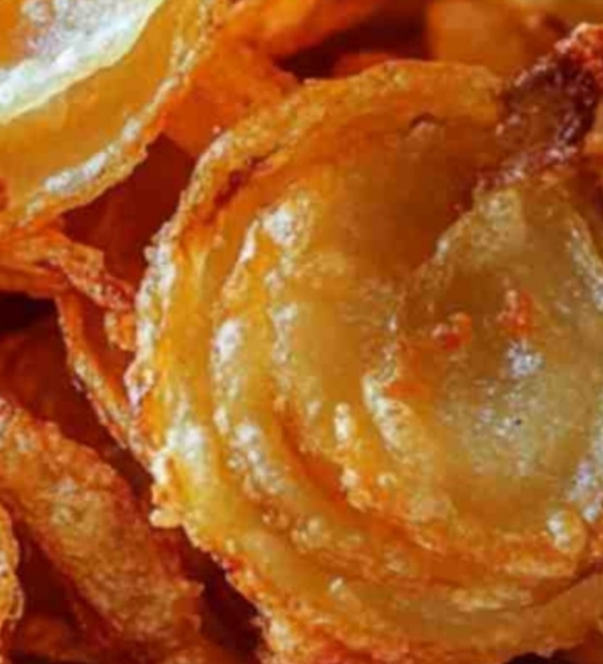 Ingredients:1 cup shredded sharp cheddar cheese½ cup crispy fried onions (like French’s)¼ tsp garlic powder (optional)Freshly ground black pepper (to taste)Instructions:Preheat oven to 375°F (190°C). Line a baking sheet with parchment paper.Mix the shredded cheddar, crispy onions, garlic powder, and black pepper in a bowl.Scoop heaping tablespoons of the mixture onto the baking sheet, spacing them out. Gently flatten each mound a bit.Bake for 6–8 minutes, or until the edges are golden and crispy.Cool on the sheet for a few minutes, then transfer to a paper towel to drain and crisp up fully.Tips:Want a spicy kick? Add a pinch of cayenne.Store in an airtight container once completely cooled.Note: These crispy onion cheddar chips are best enjoyed fresh, but they can be stored in an airtight container for up to 2 days. For extra crispiness, you can reheat them in the oven for a few minutes before serving. Enjoy!
