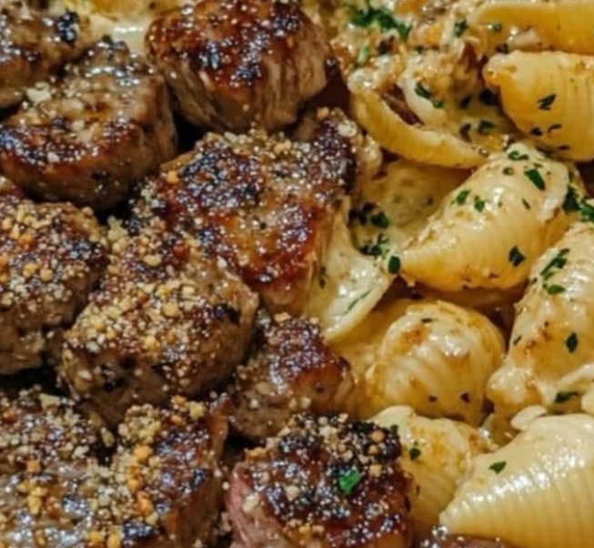 Garlic Butter Steak Bites & Creamy Parmesan Shells: A Match Made in Foodie Heaven