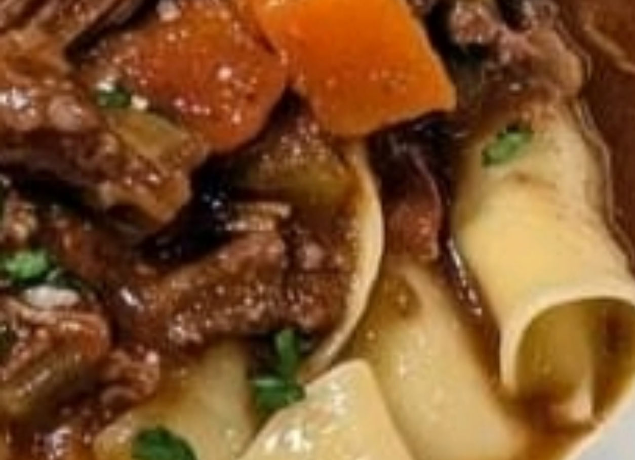 The finished dish is rich and hearty, with succulent beef that effortlessly falls apart into the silky tomato-wine sauce. The vegetables blend seamlessly into the ragu, creating depth, while the wide pappardelle noodles cradle every drop of this luxurious meal. It’s bold, comforting, and deeply satisfying.