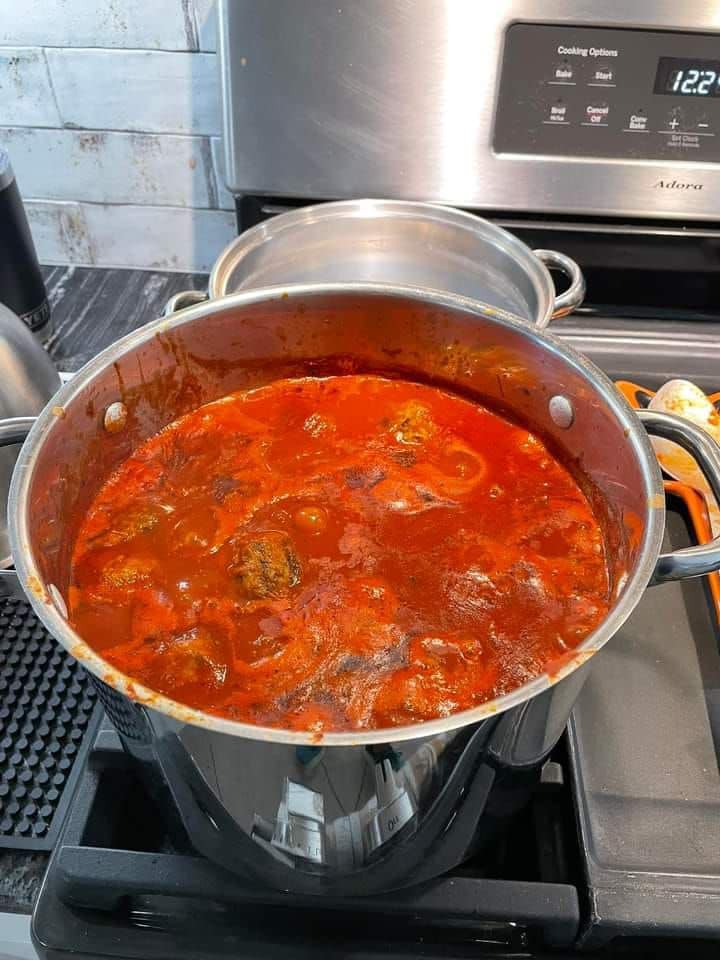 1. Step 1: Prepare the Meatballs: In a large mixing bowl, combine the ground beef, ground pork, and ground veal. Add the breadcrumbs, chopped onions, minced garlic, salt, black pepper, dried oregano, and red pepper flakes (if using). In a separate bowl, whisk together the milk and egg. Pour this mixture over the meat and gently mix until just combined. Avoid overmixing.