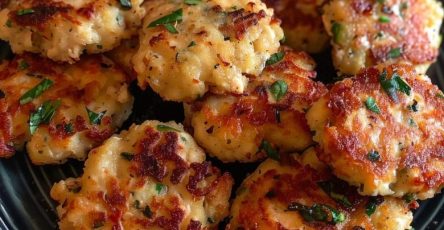 These fritters are a perfect way to use leftover chicken or canned chicken. Shredded chicken is combined with a flavorful mix of spices and breadcrumbs, then fried until golden brown and crispy.