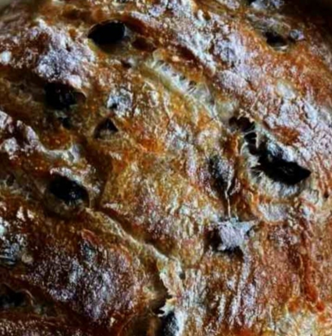 Ingredients:3 cups all-purpose flour1/4 teaspoon instant yeast1 teaspoon salt1 1/2 cups warm water1/3 cup chopped olivesInstructions:In a large mixing bowl, combine flour, yeast, and salt. Add water and olives, stirring until a shaggy dough forms.Cover the bowl with plastic wrap and let it sit at room temperature for 12-18 hours.Preheat oven to 450 degrees F (230 degrees C) with a Dutch oven or heavy pot with a lid inside.Once the oven is preheated, carefully remove the pot from the oven and remove the lid. Sprinkle flour or cornmeal on the bottom of the pot to prevent sticking.Gently shape the dough into a ball and place it in the pot. Cover the pot and return it to the oven.Bake for 30 minutes with the lid on, then remove the lid and bake for an additional 15-30 minutes, until the bread is golden brown.Remove the bread from the pot and let it cool on a wire rack before slicing and serving.Enjoy!