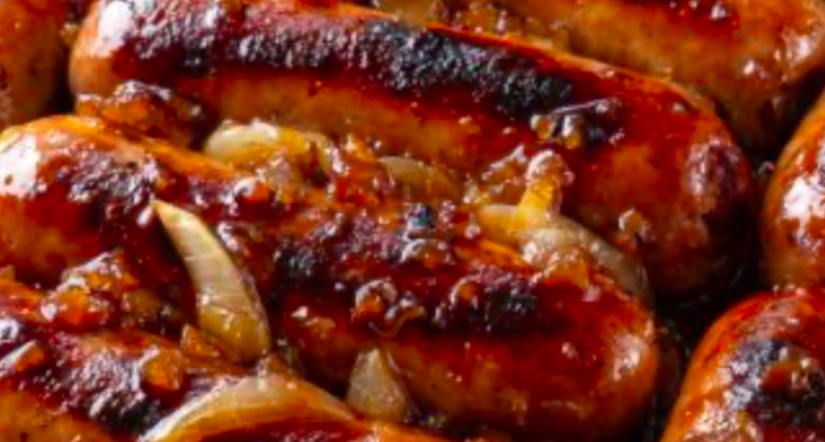 4. Pour the glaze over the sausages, turning to coat them evenly.