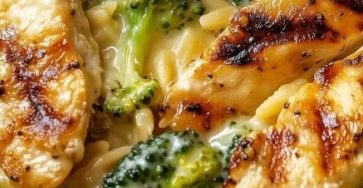 Mediterranean Creamy Chicken & Broccoli Orzo Skillet