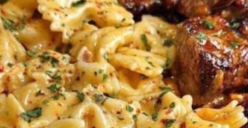 Creamy Garlic Butter Chicken & Linguine in Alfredo Sauce