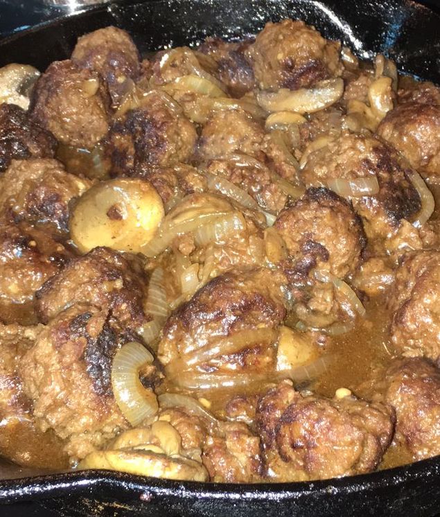 Once the meatballs are cooked and the gravy is rich and flavorful, transfer the Salisbury Steak Meatballs to a serving dish. Garnish with fresh thyme leaves if desired, and serve them hot with your choice of side dishes, such as mashed potatoes or buttered noodles.