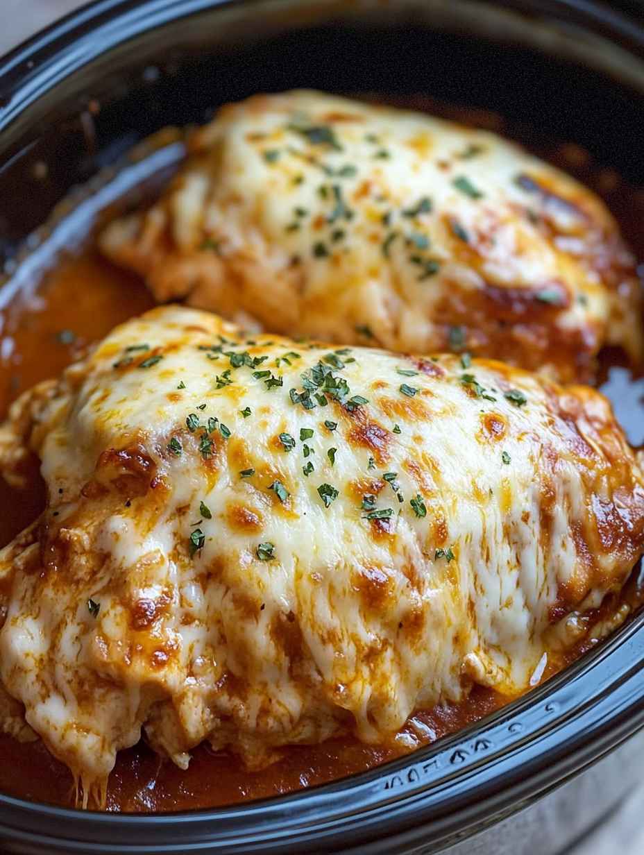 Transform simple chicken breasts into a restaurant-worthy meal with this easy slow cooker recipe! The combination of tender chicken, rich marinara, and melty mozzarella creates an irresistible Italian-inspired dish.