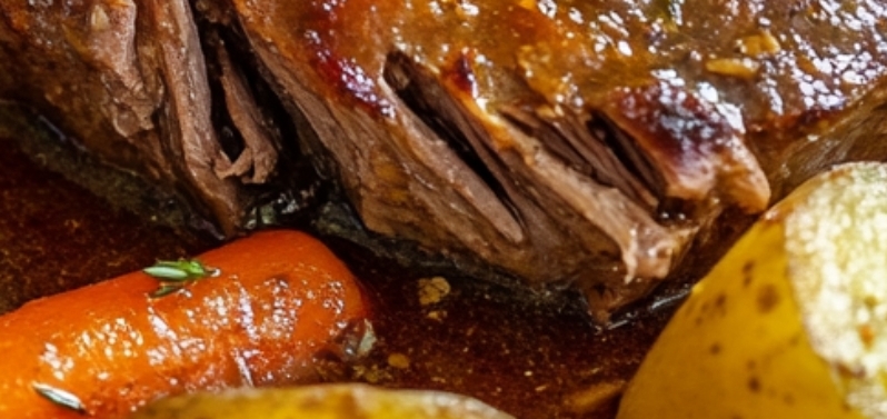 Add Broth and Herbs: Pour in the beef broth, ensuring the liquid covers about half of the meat. Add thyme, rosemary, and bay leaves.