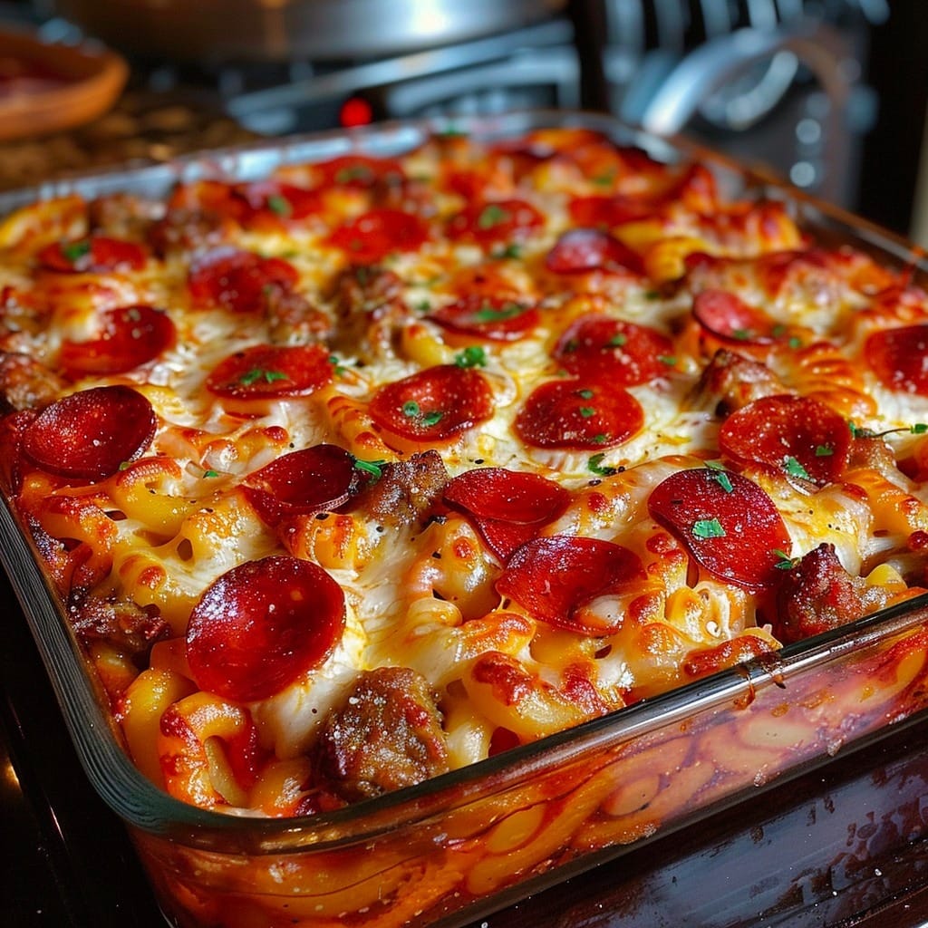 This Pizza Spaghetti Casserole combines the best of two comfort foods—spaghetti and pizza—into one easy, baked dish. A base of seasoned spaghetti is topped with a hearty ground meat sauce, diced tomatoes, your favorite pizza toppings, and a generous layer of melted Italian cheese.